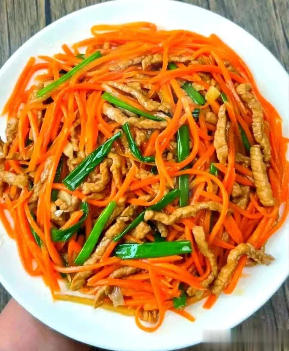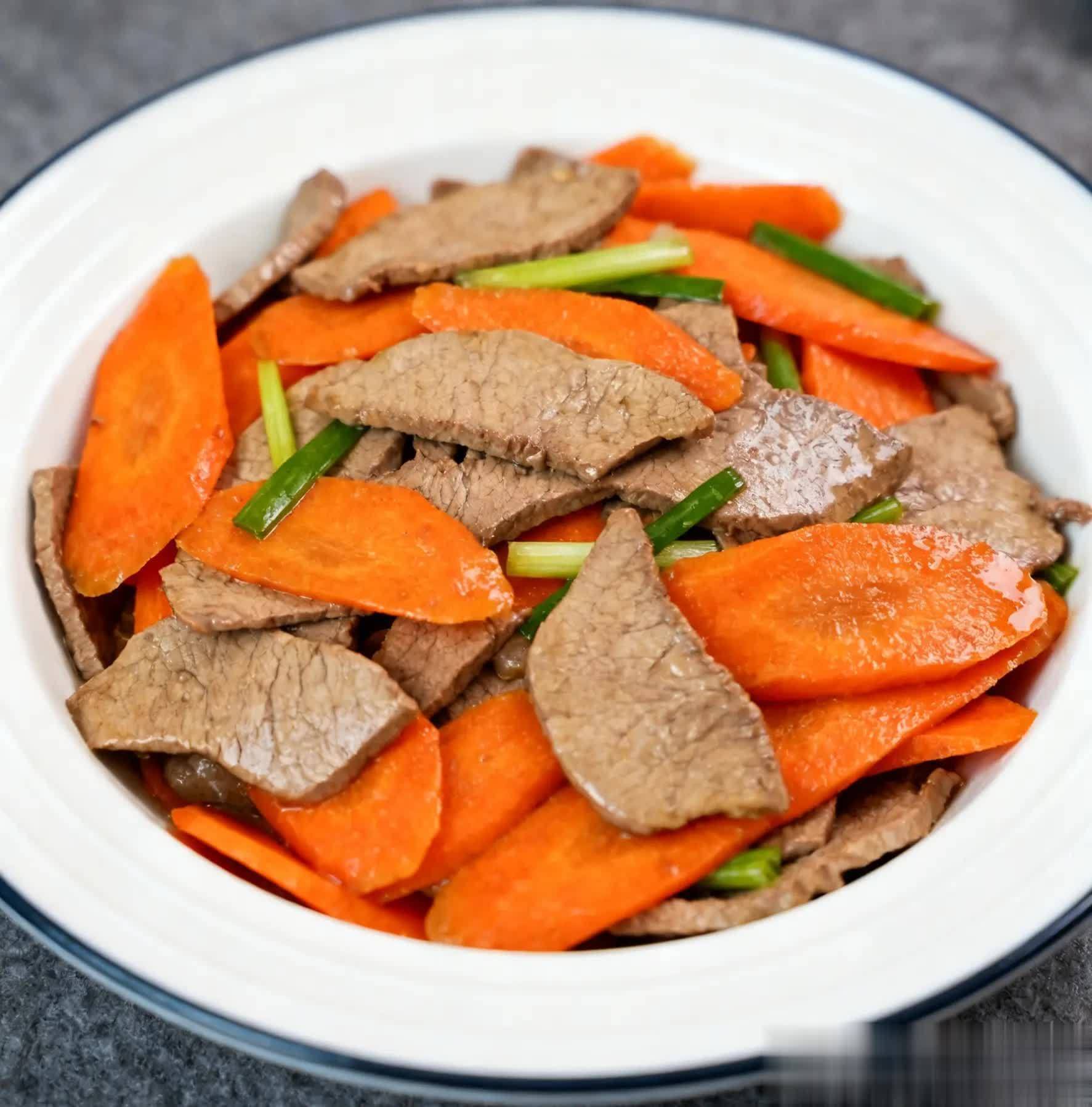 材料:胡萝卜 200 克、猪肝 150 克、葱、姜、蒜、料酒、生抽、盐、淀粉适量。