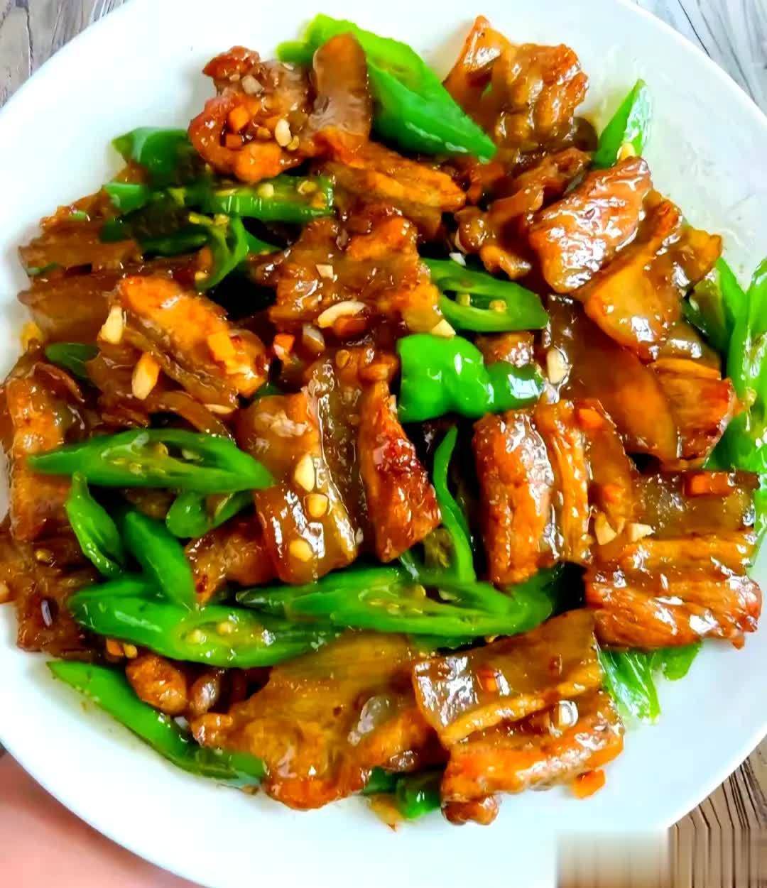 食材:五花肉、青辣椒、蒜末